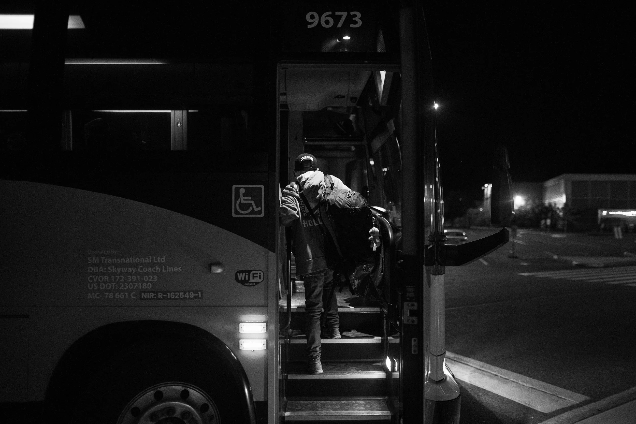 It’s minutes to midnight when a lime-green coach bus pulls to a stop in a nondescript shopping centre parking lot in Ottawa’s east end. The pneumatic brakes on the bus hiss and the front door opens.
