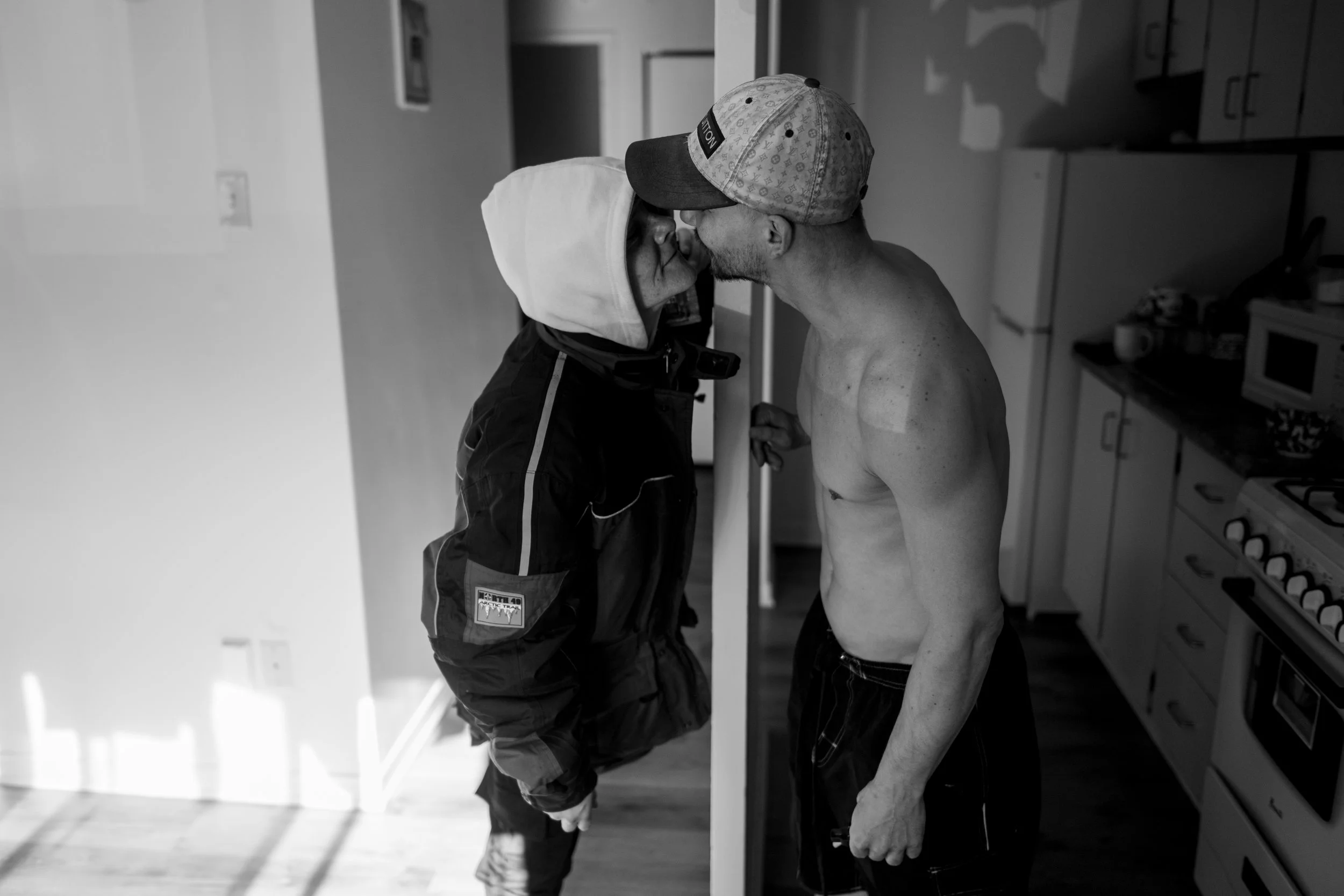 Thumper, left, and Tate share a moment in Tate’s living room apartment building in Lower Town in Ottawa
